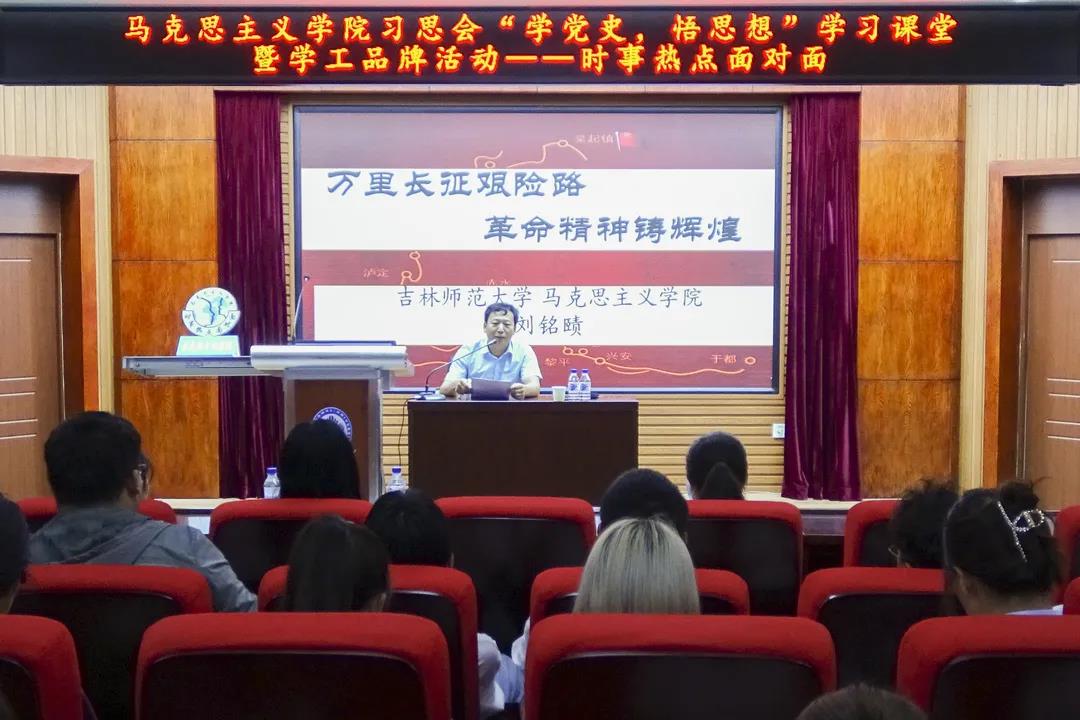 接着,刘铭赜老师对红军长征胜利的原因进行全面分析。他指出,长征的胜利在于遵义会议的召开、陕甘宁根据地的存在、国民党政府的内部矛盾以及长征精神的支撑。长征的伟大胜利,不仅开辟了中国革命继往开来的道路、奠定了中国革命胜利前进的基础,而且也谱写了豪情万丈的精神史诗。最后,刘铭赜老师讲述了在实践中形成的伟大长征精神,并指出这种精神对当代青年的指导作用。长征精神所给予我们的是不畏困难、勇敢向前的力量,是无私奉献、紧密团结的精神,是树立崇高信仰、坚定理想信念的决心。