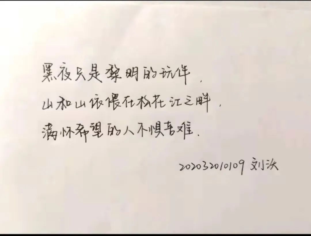 活动期间,众多同学踊跃参加,以心为纸,以情为墨,提笔书写了许多文采飞扬的暖心话语。同学们笔下生花,书写下的文字是对工作人员们默默付出的赞美鼓励,也是同学们积极的抗疫态度和对抗击疫情的信心与展望。经过评选,以下优秀作品立意新颖、文笔细腻,体现了马院学子携手同心抗击疫情的坚定信念。此次活动彰显了我院学生的面对疫情的积极心态,将疫语暖事融情三行字间,纸短情长,在带给他人温暖的同时也在激励自我,相信我们也会携手同心,役疫生辉。