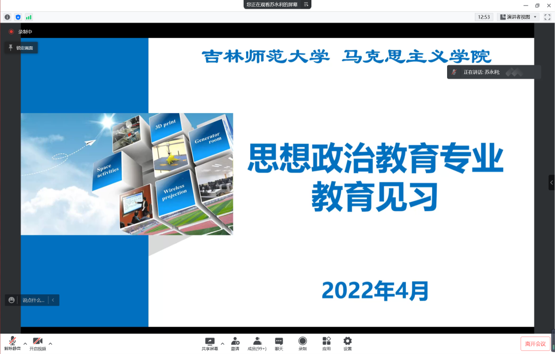 4月19日,同学们观摩了延吉一中宋爱琼老师的高中思想政治课程和九台一中吕铭栋老师的高中政治议题式教学展示,“纸上得来终觉浅,绝知此事要躬行”。同学们深入一线教学的课堂体验实际的教学过程,别出心裁的教学设计,新颖有趣的教学活动,即使是线上教学同学们也能感受到课堂活跃的气氛。切实贯彻以人为本的教学理念,与学生进行良好的互动让学生成为课堂的主体,增强学生的参与度和积极性,这两节教学为我院学生展现了精彩的高中政治课示范课堂,同学们收获良多。