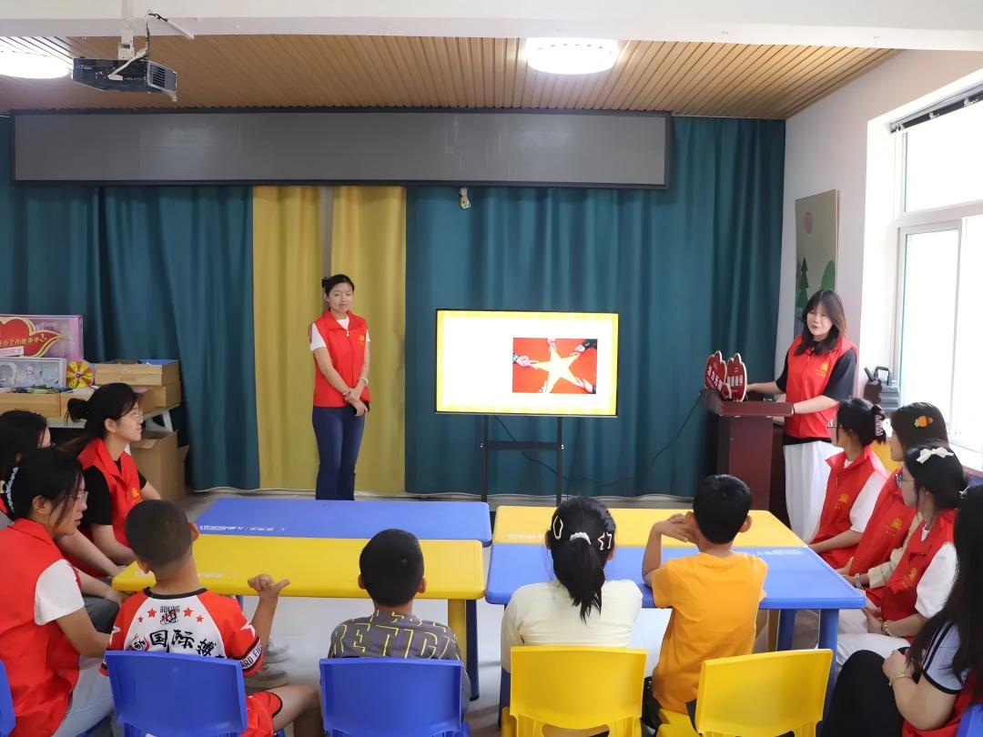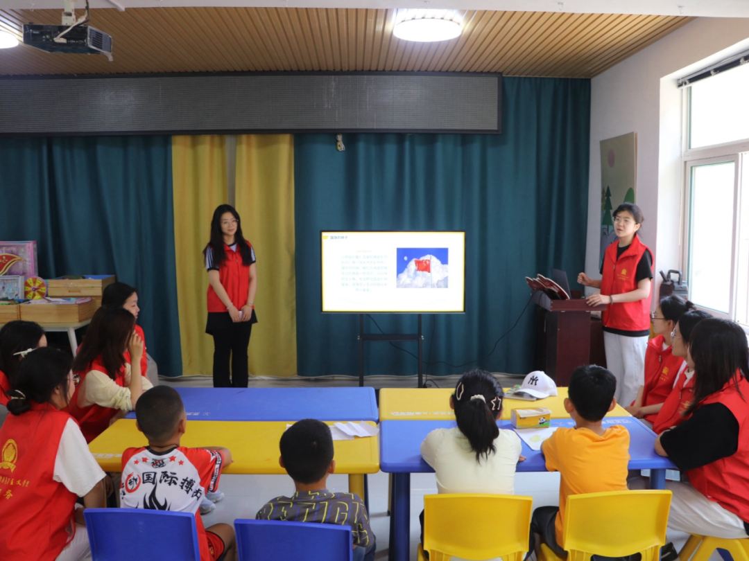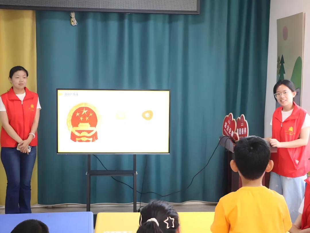 为强化中小学生国旗国徽意识,由我院“铸魂”宣讲团成员组成的宏大社区青年志愿服务队于6月8日前往宏大社区进行志愿宣讲,鼓励中小学生了解国旗与国徽的相关知识,做时代好少年。活动现场,宣讲团成员温暖开讲,化身知识的引路人,为中小学生讲解了国旗与国徽的知识。他们用学习与实践相结合的方式,为中小学生搭建了高效的学习平台,激发中小学生的爱国主义情怀。