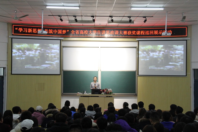 2018年10月30日,吉林省高校大学生讲思政课大赛获奖课程巡回展示活动在bat365平台官网6教103教室举行,来自bat365平台官网、bat365平台官网博达学院、吉林工程职业学院三所高校的近300名师生与会。本次活动由吉林省教育厅组织开展,bat365平台官网承办,主题为“学习新思想 共筑中国梦”。