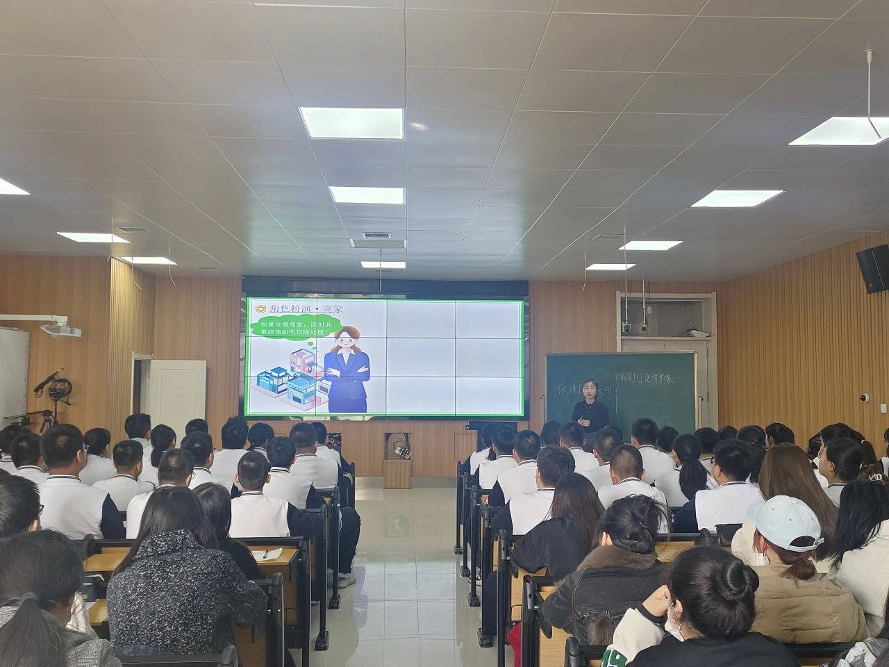 3月27日晚,我院特邀东北师范大学教育硕士、东北师大附中思政课教师、长春市时事新闻主讲教师刘强,为同学们带来一场主题为“青年思政课教师的奋斗目标和路径”的专题讲座。刘强以深入浅出的方式,从青年思政课教师的岗位要求、奋斗目标和路径,以及自身肩负的使命和责任等多个方面进行了详尽的讲解。讲座现场,同学们热情高涨,积极参与互动,现场氛围浓厚,思辨性强,激发了同学们对青年思政课教师职业发展的深入思考。