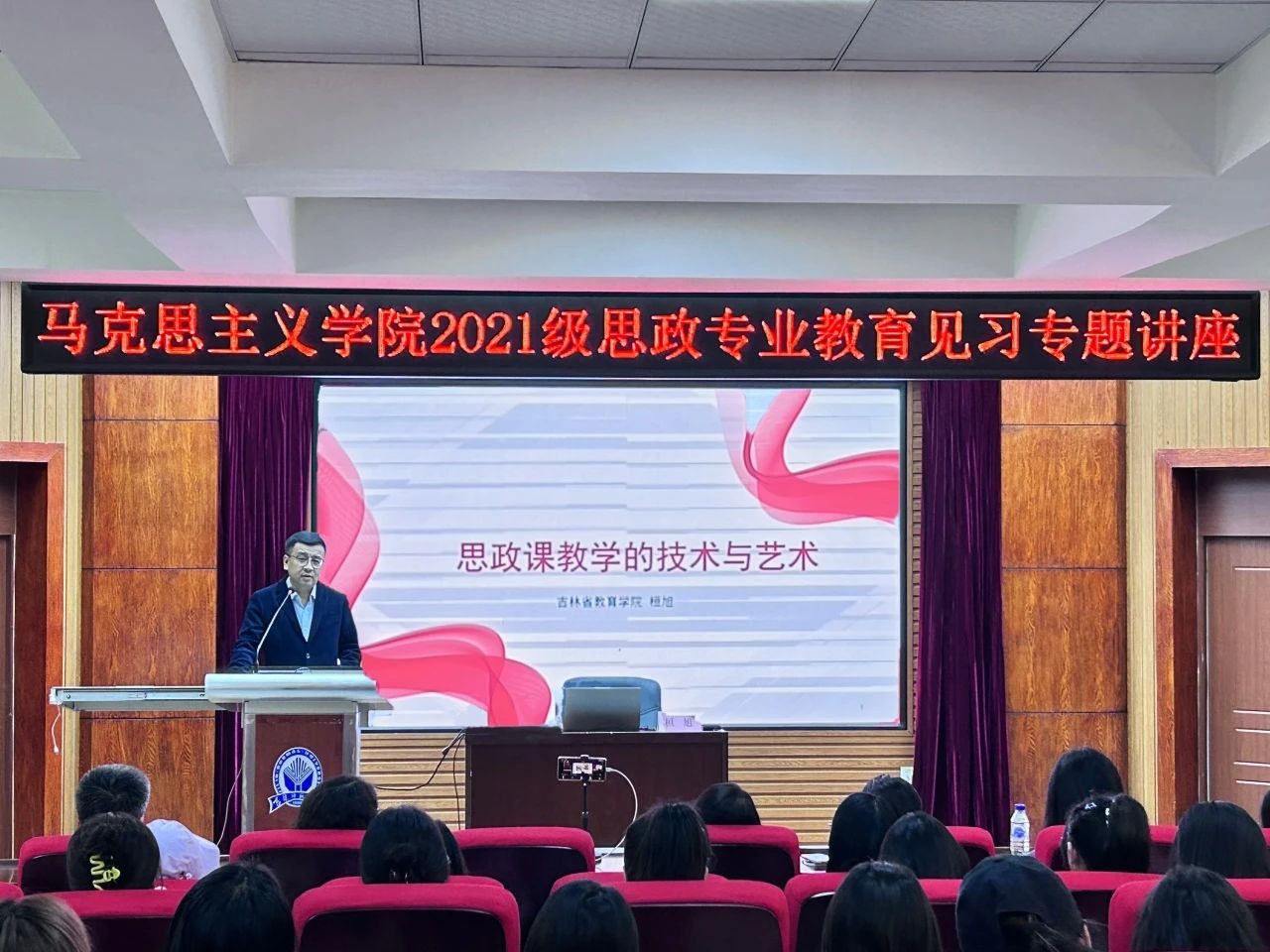 4月17日下午,我院特邀吉林省教育学院教研员桓旭,为同学们带来一场主题为“思政课教学的‘技术’与‘艺术’”的专题讲座。桓旭以深入浅出的叙述方式和幽默风趣的语言风格,从教学实施的结构优化、教师专业发展路径、非语言表达等多角度出发,对“思政课教师如何实现教学实施的结构优化”这一问题进行详细讲解。本场讲座激发了同学们对桓旭老师“要做好教学,就要掌握和学生对话的艺术”的深入思考,全程讨论氛围浓厚、思辨性极强,同学们积极参与互动,热情高涨。