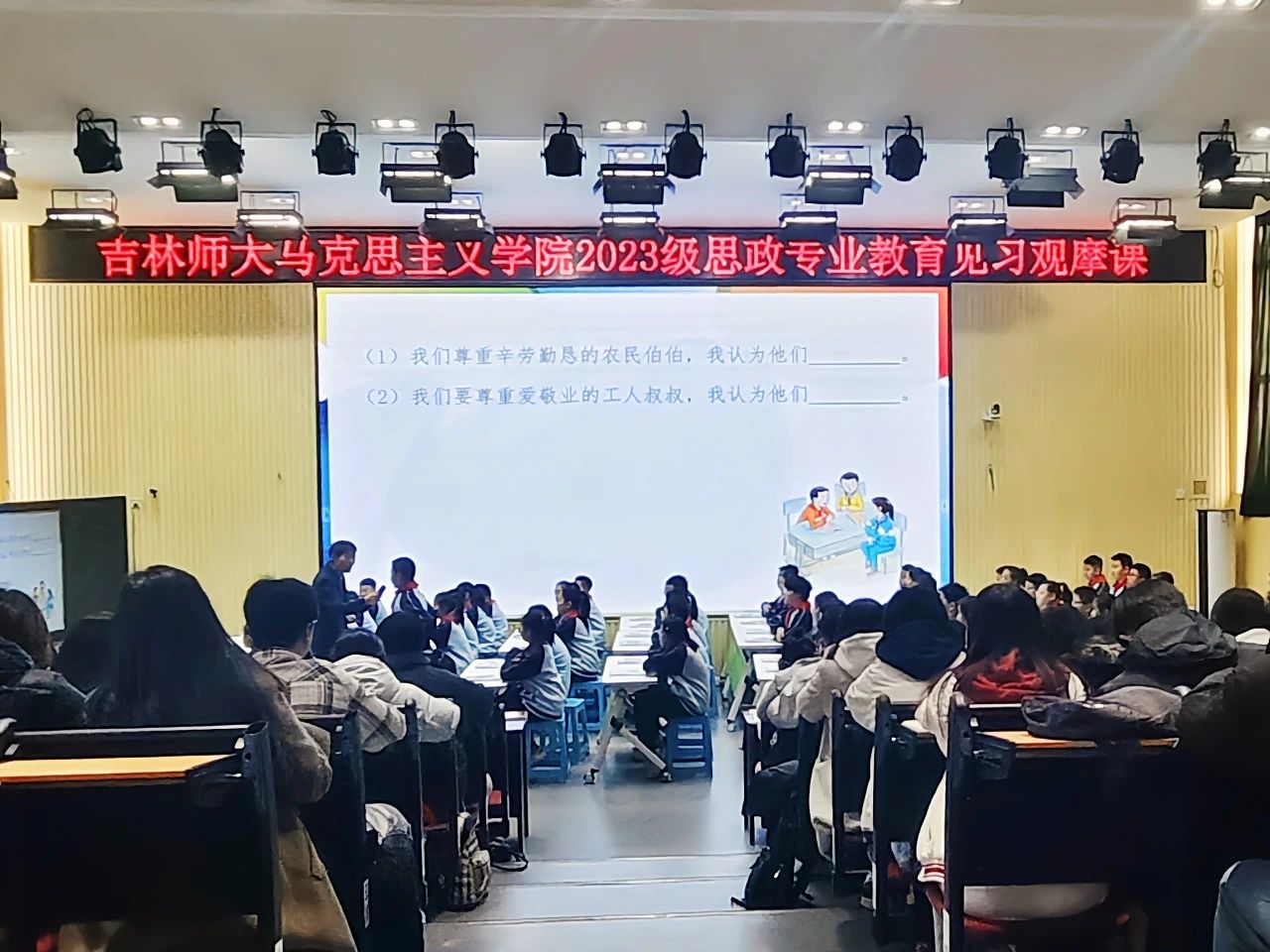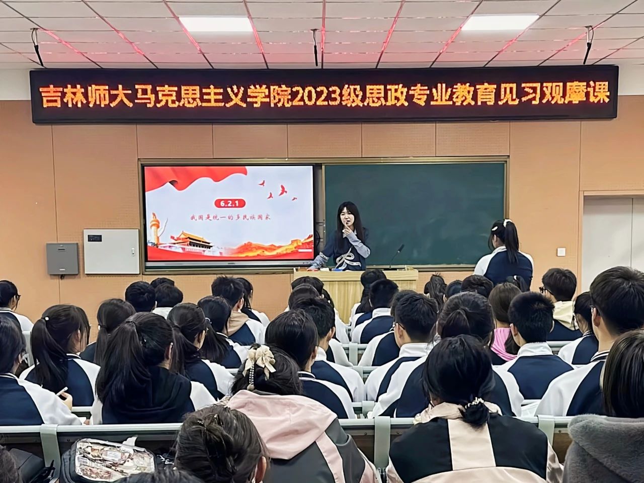 3月26日上午,全体同学赴四平实验中学观摩高中政治课。邹海铎和刘婷两位教师以学生为中心,运用多种互动式教学法,巧妙串联教学环节。课堂氛围活跃,学生积极参与互动,展现出扎实的基础知识。此次观摩为我院思政教学改革提供新启示,推动思政教育高质量发展。