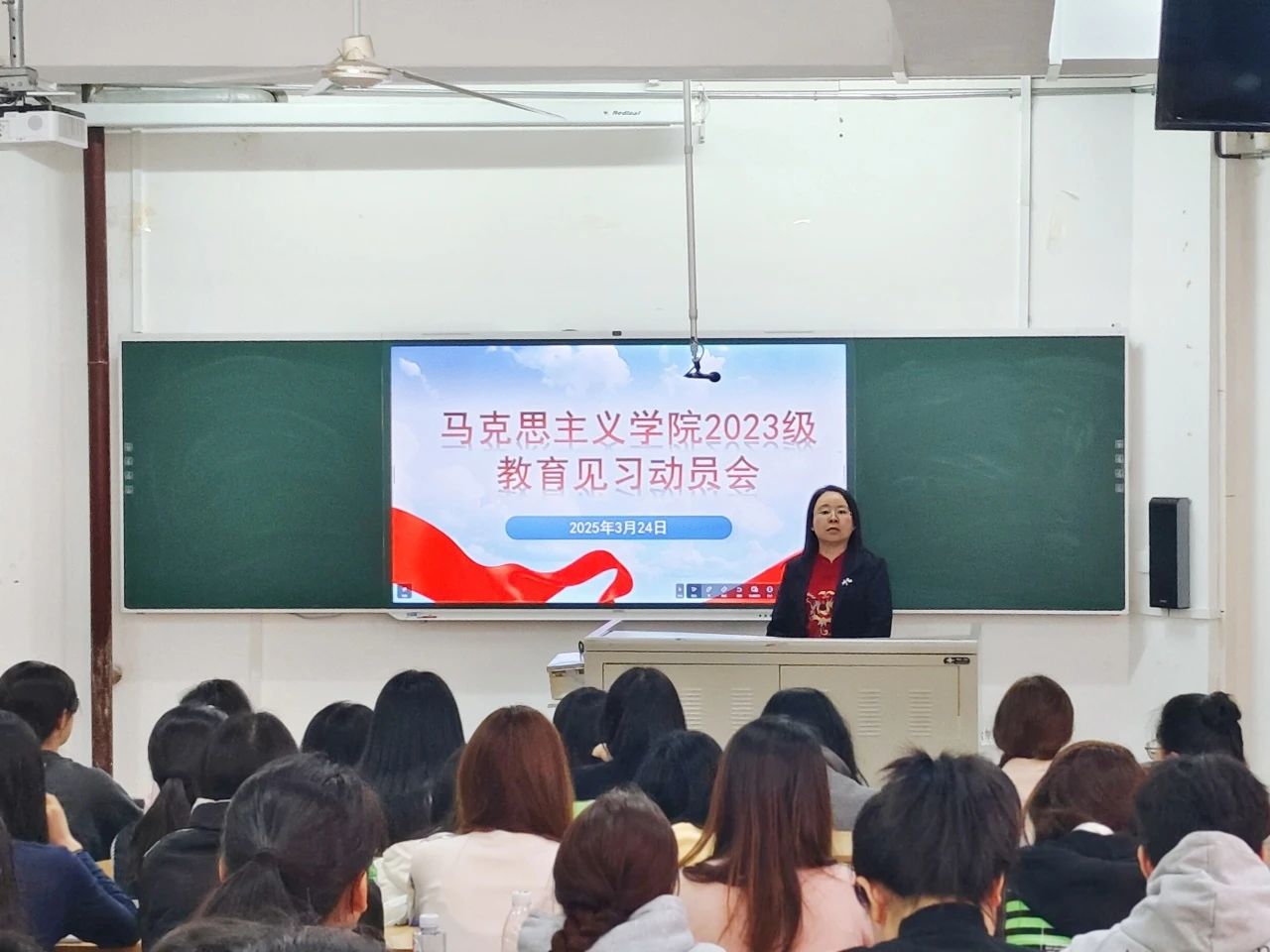 3月24日上午,我院举行2023级全体同学的教育见习动员大会。会上,教法教研室主任苏永利向同学们详细阐述本次见习的整体规划,并提出具体要求;副院长张宇强调本次教育见习的重要性,明确我们如何从一名学生转变为一名真正的基层教师。