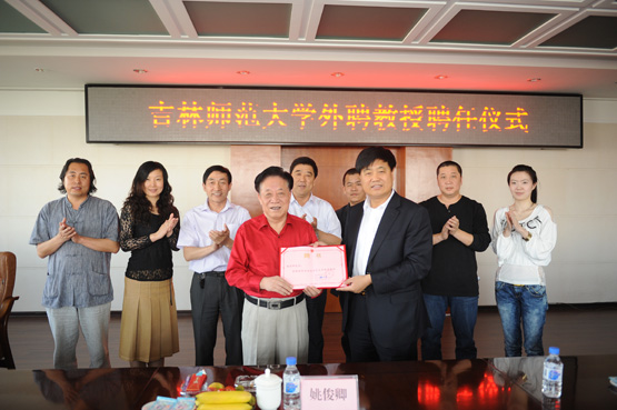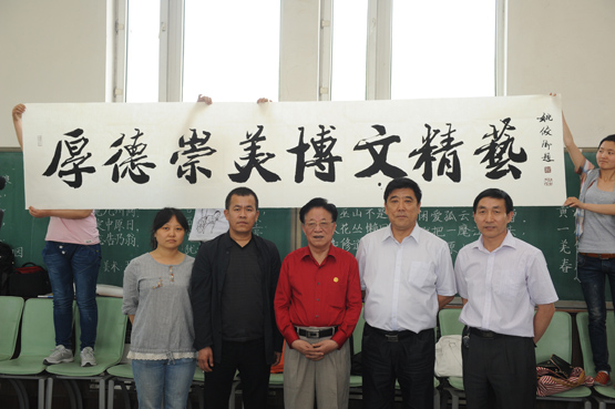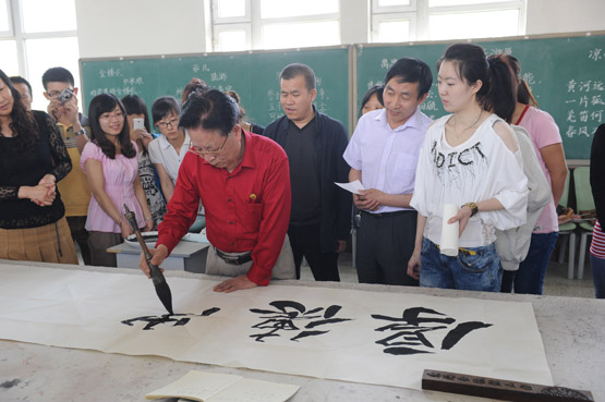 2012年6月1日,bat365平台官网更名十周年之际,bat365特聘姚俊卿为美术学院客座教授。姚俊卿,中国书法家协会会员,中华人民共和国知识产权文化大使、中国书画函授大学总校教授。中国人民大学书法研究生导师、中共中央国家工作委员会紫光阁画院院士、中华名人协会中国书画研究院教授。姚老于上午9:30时在bat365老图书馆三楼为学校师生进行书法演示,并为学生点评书法作品。书法表演期间,姚老分别用行书和草书两种字体书写了毛主席诗词《沁园春·长沙》。下午13:30时,姚老又不辞辛苦在校园书馆报告厅进行《书法艺术漫谈》的讲座,并呼吁广大学子要热爱中国传统文化,我院陈文国院长及师生热情参与了此次讲座。