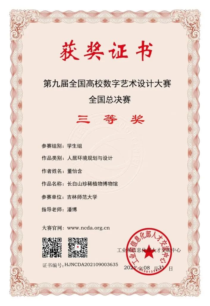 2019级产品设计专业刘昊天、2019级环境设计专业董怡含同学分别获第九届全国高校数字艺术设计大赛(未来设计师NCDA大赛)全国总决赛国家级一等奖、三等奖。