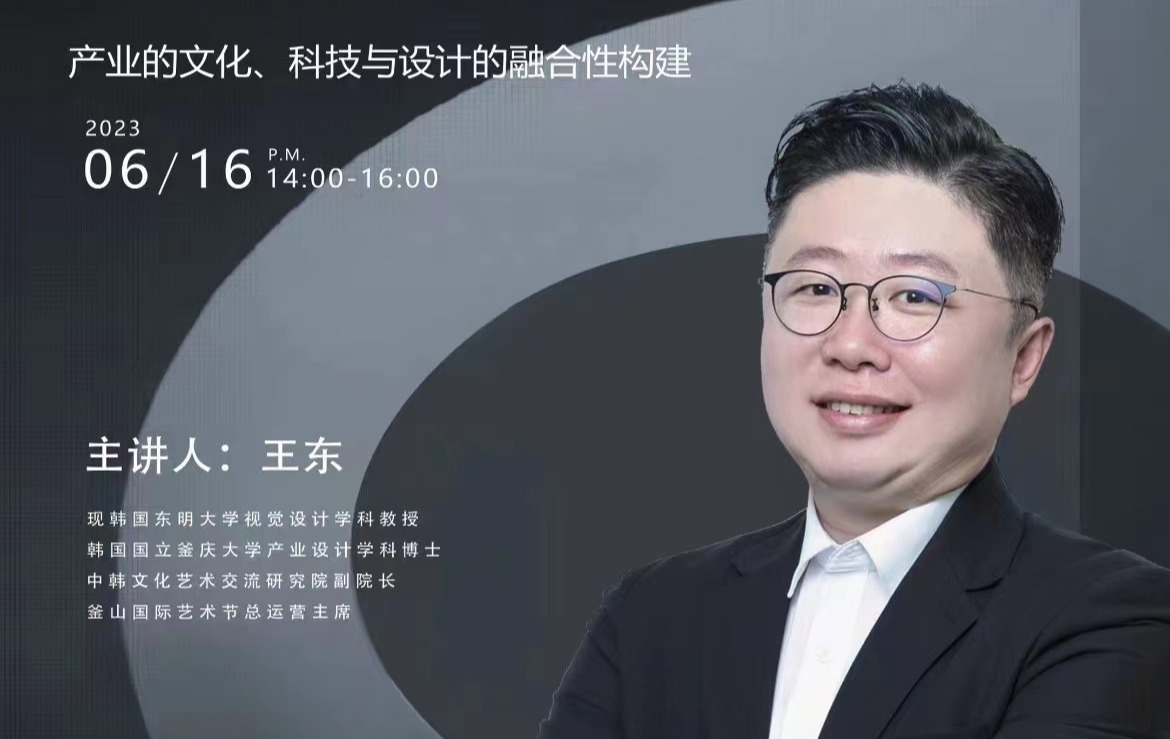 2023年6月16日下午,bat365平台官网美术学院在图书馆报告厅举行隆重仪式,聘请韩国东明大学视觉设计学科教授、韩国国立釜庆大学设计学博士、中韩文化艺术交流研究院副院长、釜山国际艺术节运营主席王东教授来bat365就《产业文化、科技与设计的融合性构建》话题开展学术讲座。