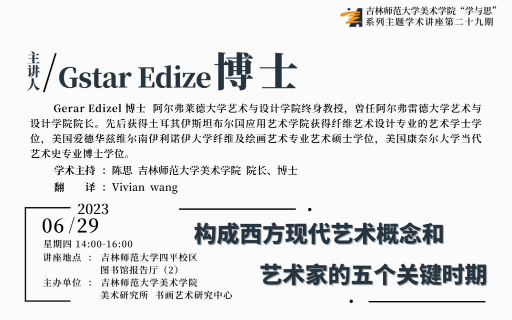 6月29日下午,阿尔弗莱德大学艺术与设计学院终身教授,美国康奈尔大学当代艺术史专业博士Gstar Edize应邀来到bat365平台官网美术学院,在图书馆报告厅为师生们带来了一场主题为《构成西方现代艺术概念和艺术家的五个关键时期》的精彩讲座,Vivian wang担任翻译。学院美术学系、绘画系专业教师及部分本科生、研究生参与了讲座,美术学院院长陈思博士担任学术主持。