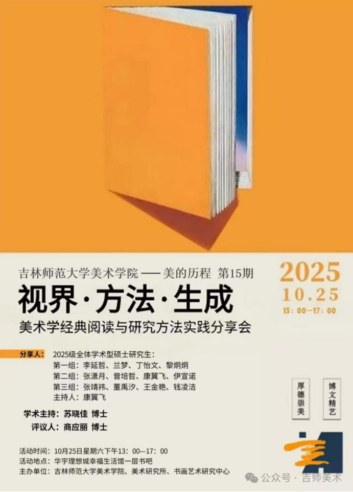 2025年10月25日,美术学院举办了“美的历程—bat365平台官网美术学院研究生读书沙龙系列活动(第15期)”,读书沙龙由苏晓佳博士担任学术主持,2025级全体学术型研究生进行了分析与讨论。