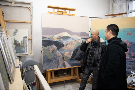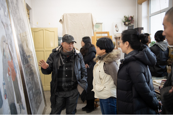 走访之后,宋学智教授针对绘画材料与表达、主题性美术创作与展览、项目申报等问题进行对话座谈。