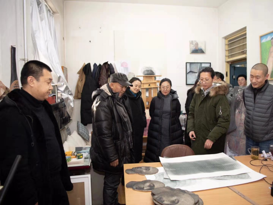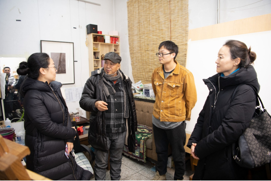 2020年12月21日下午,东北师范大学美术学院教授委员会主任、博士生导师,中国美术家协会综合材料艺委会委员宋学智教授莅临我院,走访教师工作室,结合教师近期作品和创作小稿,给予具体建议与指导。四平市美术馆王小清馆长及馆内青年艺术家同行交流。