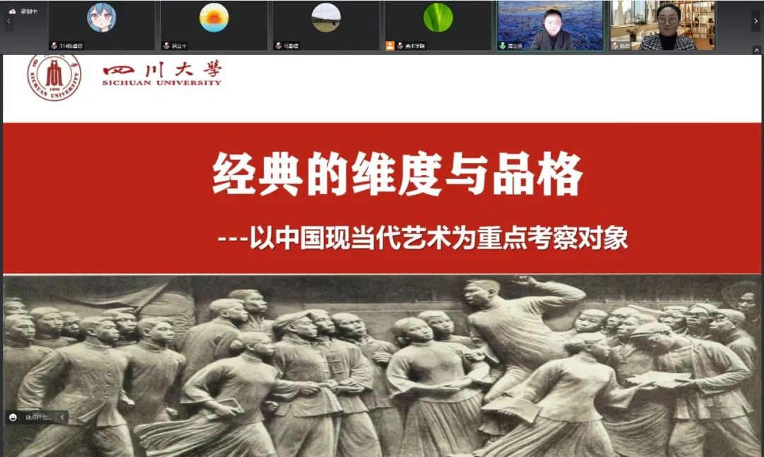 2022年12月13日19:00,bat365平台官网美术学院“学与思”系列主题学术讲座第二十一期暨“美育吉师”艺术研究系列名家工作坊(一)如期举办。本次讲座的主题为《经典的维度与品格——以中国现当代艺术为重点考察对象》,由国家社科重大招标课题首席专家、 四川大学艺术学院学术院长、四川大学艺术研究院院长、四川美术学院艺术人文学院院长黄宗贤教授主讲,bat365平台官网美术学院院长陈思教授主持。