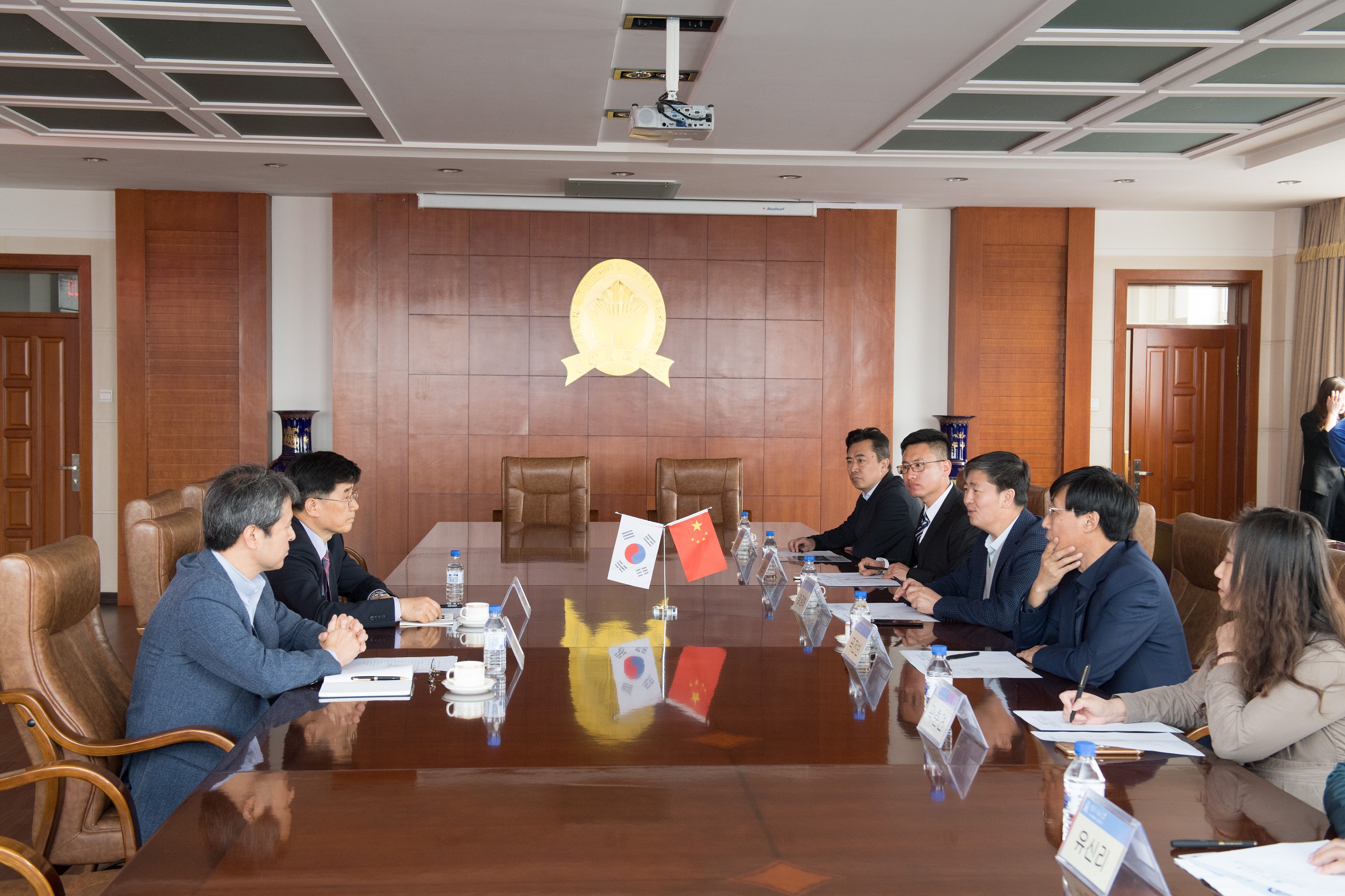 会谈中,双方就bat365韩国传统文化馆施工、竣工、韩国传承工艺品运送、交接及开馆揭牌仪式、文化馆运营工作等进行了深入探讨与交流。代表团对展馆施工情况表示肯定,并就进一步完善工作提出了指导意见。双方对传统文化馆名称确定、传承工艺品摆放、说明书翻译、展馆专业人员培训、联合制作展馆宣传手册及影像资料进行了磋商。杨景海希望把韩国传统文化馆揭牌仪式做为bat365六十周年特别献礼,并邀请韩国非物质文化遗产中心领导参加bat365六十周年庆典。代表团一行感谢bat365邀请,并表示届时会选派韩国专业传统文化表演团庆祝大典。