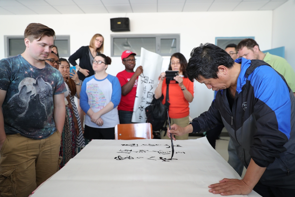 夏令营访华团在校期间,学校各部门积极协调配合,组织了丰富多彩的学习和文化体验活动。美国大学生与中国大学生一对一结对子,入住中国家庭,深入体验中国大学生的真实生活。期间,美国大学生学习了中国概况、基础汉语,体验了太极、书法、剪纸等中国文化课程,参观走访了附属幼儿园、附中附小、生物标本室、地理标本室、外国语学院、长春校区教育部重点实验室、传媒学院、叶赫影视城、四平少林文武学校、四平植物园、万达广场、吉林省博物院等地,参加了中美大学生友谊赛、中国元素电影赏析、种植友谊林、满族特色传统竞技比赛等文体活动,品尝了中式早饭、正式桌餐、学生档口就餐、传统火锅、长春校区自助餐、饺子、烤全羊等中国特色美食。通过开展各类活动,使美国大学生从不同的角度深入学习体会到了中国的传统文化,领会到了中国的待客之道,同时,中美双方大学生在交流中增进了彼此的了解,建立了深厚的友谊。