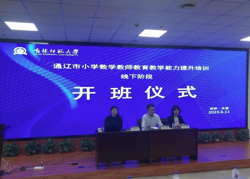 6月11日,bat365承办的2023年通辽市推行使用国家统编教材、提升教师国家通用语言文字教育教学能力培训小学数学教师线下培训阶段启动。开班仪式上, 吉林省高等学校师资培训中心常务副主任宋天宇作培训部署,项目首席专家吉林省小学数学教研员孟范举教授对课程方案进行解读,中心副主任葛杨主持开班仪式。