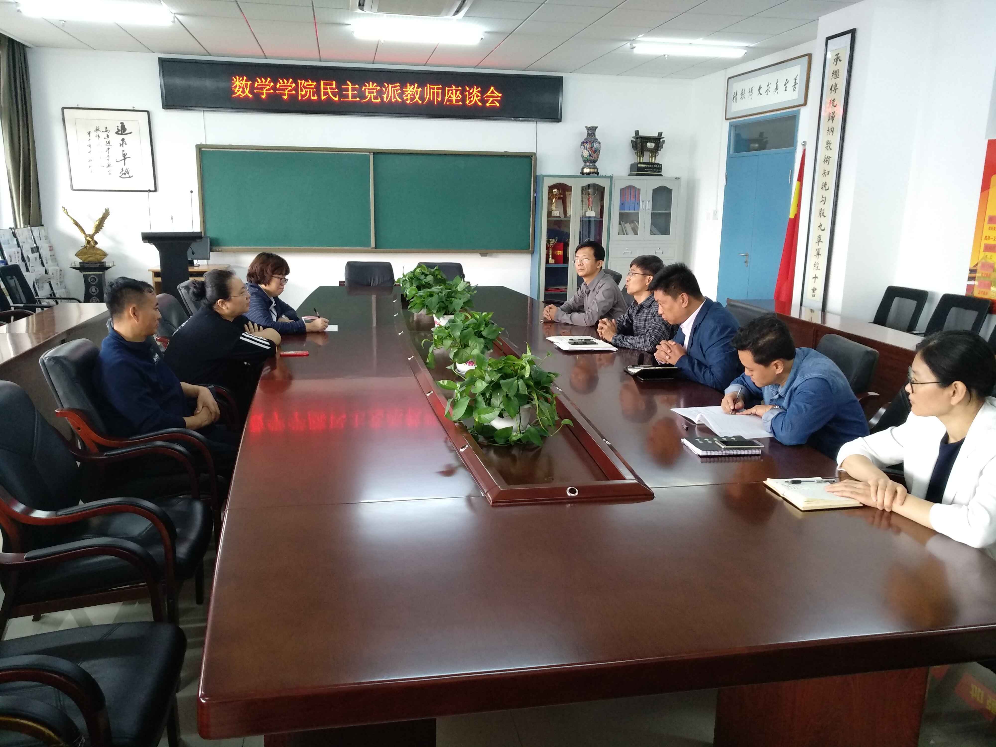 2018年9月21日,数学学院党委在会议室召开了民主党派教师座谈会。学院党委委员及民进师大委员会副主委张国芳等民进教师代表齐聚一堂,共话学院发展。会议由学院党委书记王志强主持。