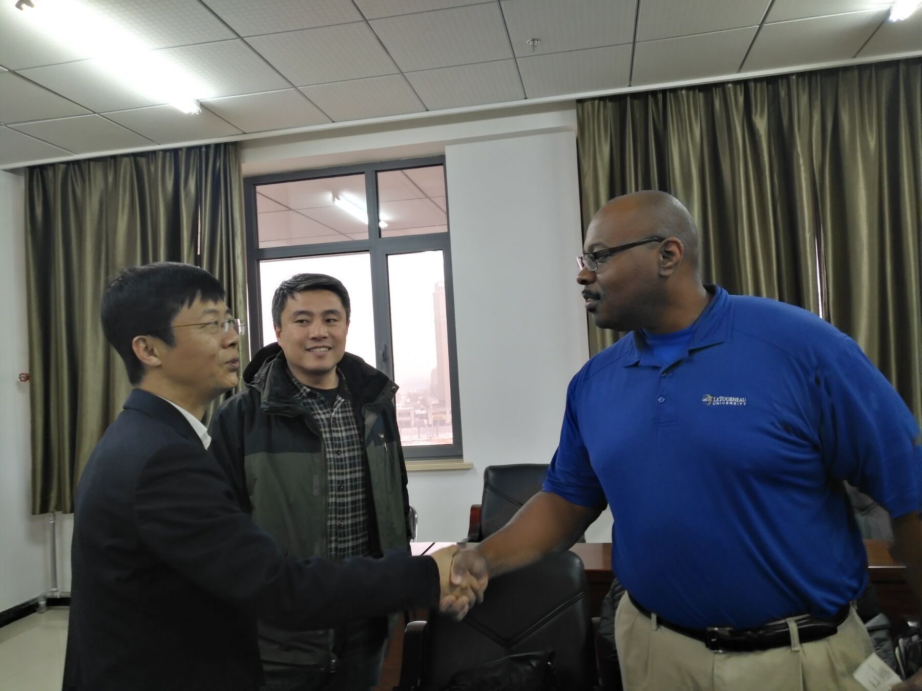 新学期,我院迎来拉特诺大学数学系Curtis Wesley教授,Wesley教授将在bat365平台官网任课一个学期,带领我院一个教师团队完成ISEC、中外合作办学、数学与应用数学等专业数学基础课双语教学课程的教学任务。图为Wesley教授、外事处杜瑞康副处长、数学学院刘鹏飞院长热情交流。