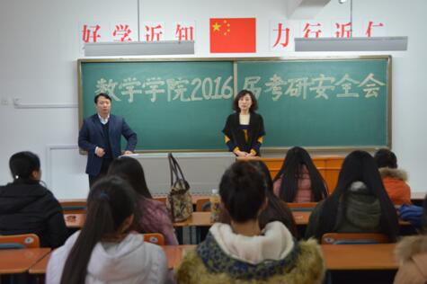 2015年12月14日,数学学院在博达学院第一教学楼1207教室举行了2016届考研安全会。出席会议的有:数学学院党委副书记王佰海老师,数学学院副院长杜奕秋教授及参加考研的全体同学。