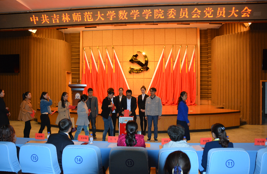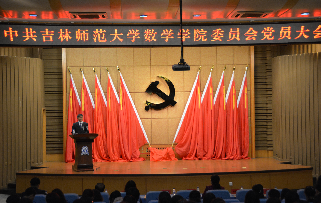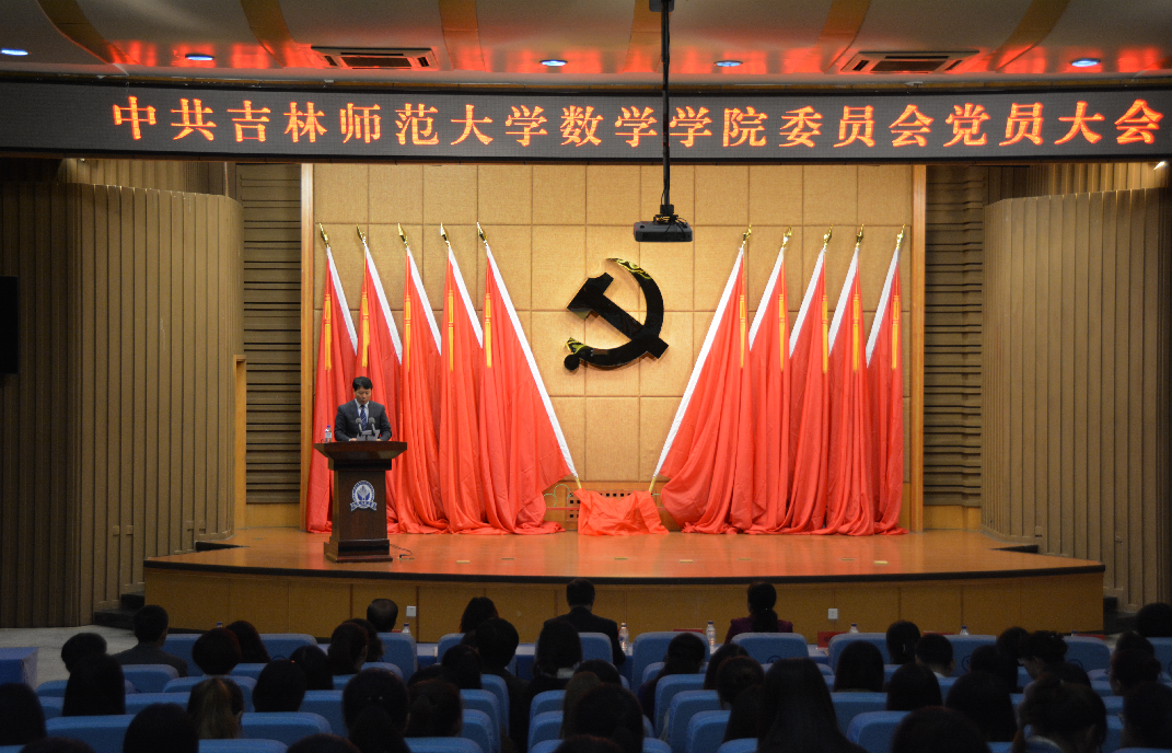 大会由党委副书记王佰海同志主持。学校党委委派代表参加了会议,学院入党积极分子列席了会议。党委书记王志强同志代表上届委员会做了题为《求真务实,科学发展,为数学学院美好明天而努力奋斗》的工作报告。《报告》全面回顾和总结了学院自上次党员大会以来的各项工作,明确提出了今后一段时期内的工作目标和努力方向。《报告》最后指出,今年是学校“十三五”规划的开局之年,我们必须坚持内涵发展,坚持特色发展,坚持和谐发展,使学院各方面工作再上一个新台阶。