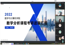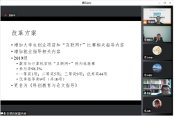 逯洋副院长介绍教学研讨整体进展情况,张双红、杜奕秋、徐宝、谭振江、逯洋和孙宏宇分别代表《数学分析》、《高等代数》、《概率论与数理统计》,《C语言程序设计》、《数据结构》、《计算机网络》和《操作系统》等课程团队围绕“考研专业课前期准备、计划和具体实施、存在问题、困难及对策”等内容进行汇报交流。