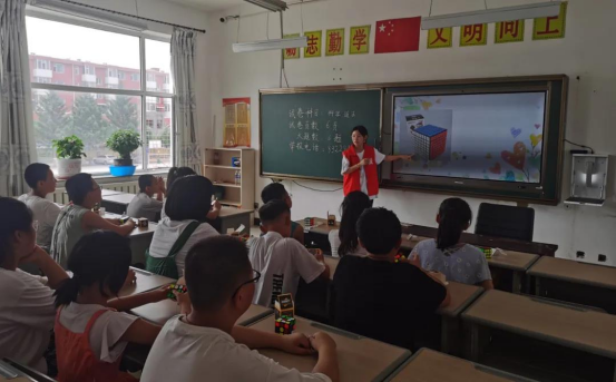 此次三下乡活动,以传播数学文化为主,志愿者为孩子们介绍我院特色品牌活动——数学文化节,带领孩子们学习数学知识,讲述生活中的数学,进行多种多样数学趣味活动,与孩子们一起感受数学的魅力。炎炎七月,热情洋溢,青春的活力、奉献的精神在一间间教室里熠熠闪光。