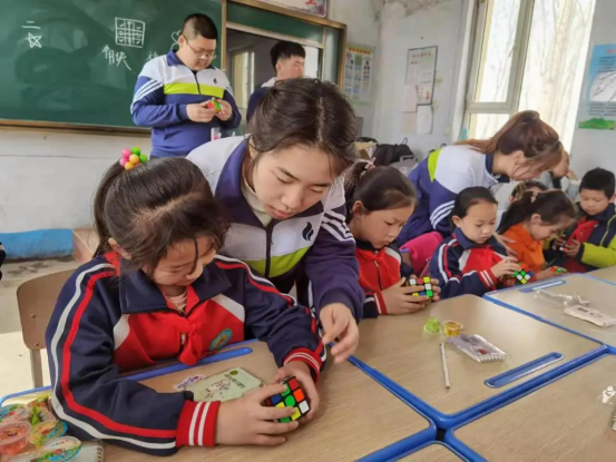 活动中,同学们以中国发展为题,为孩子们讲述了建党百年历史,展示了在党的引领下国家在各项事业上取得的历史性成就,充分调动了孩子们爱国、爱党的浓厚热情。同学们充分发挥自己的专业特色,通过趣味游戏、魔方密码、数独解密等活动带领孩子们了解数学知识,启发其动手实践能力。