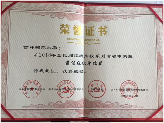 近日,由吉林省新闻出版广电局、吉林省高等学校工作委员会、吉林日报社、吉林东北亚出版传媒集团有限公司主办,吉林省阅读协会高校阅读委员会、吉林手机报、吉林省外文书店承办的健康生活·悦动吉林——书香吉林·阅读在身边”2018年全民阅读进高校系列活动落下帷幕。