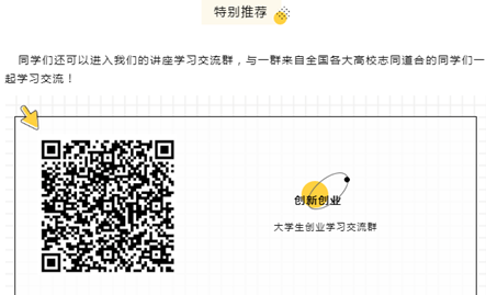 一、讲座——赵国年 内蒙农业大学招生就业处处长、创新创业学院院长,第七届中国国际互联网+大学生创新创业大赛国赛评委。 讲座时间:11月23日 19:00 主讲嘉宾:赵国年 讲座主题:农科大学生创新创业项目成长之路 1、创新创业与农科大学生的成长 2、农科大学生创新创业的特点 3、农科大学生创新创业项目的选择 4、农科大学生创新创业项目的培育与展示 观看地址:创课之星 微信公众号 一、 讲座——王军 中国双创导师库导师,内蒙古高校大学生就业创业指导专家库成员,第五届中华职教创业大赛国赛评委。 讲座时间:11月24日 19:00 主讲嘉宾:王军 讲座主题:欠发达地区高职创新创业教育的探索 —— 以锡林郭勒职业学院为例 1.欠发达地区高职创新创业教育的痛点及需求分析 2.双创案例教学模式及百半三教育模式 3.特色产业引导下的师生共创 观看地址:创课之星 微信公众号 二、 参与学习 参与本月的讲座活动学习,不仅能在线与嘉宾老师互动,同时还有机会免费领取到创课之星为同学们准备的神秘惊喜福利一份哦!具体内容还请届时关注创课之星公众号哦! |