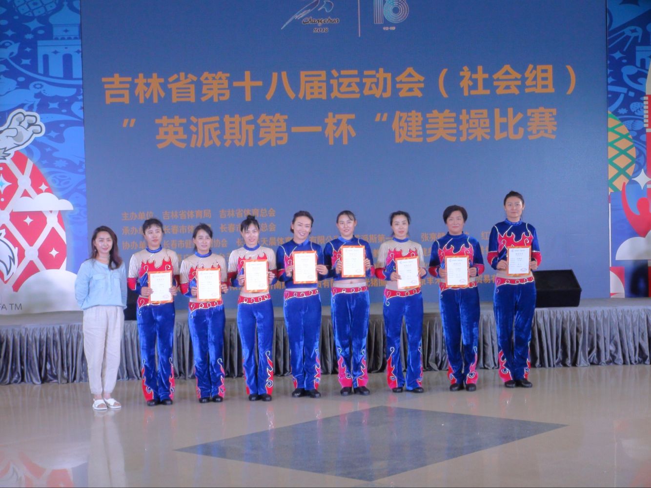 由吉林省体育局、吉林省体育总会联合主办,长春市体育局、长春市体育总会承办的吉林省第十八届运动会健美操项目社会组比赛,于2018年6月17日在长春举行。我院王美红、李淑媛、张立平、宋文波、李贺、张冬梅、祁鸿雁、刘洋八名女教师组成的健美操队参加了比赛。八名女教师刻苦训练、精雕细琢、不畏强者,经过激烈角逐,为观众和裁判完美演绎有氧舞蹈和有氧踏板两套健身操,最终荣获有氧舞蹈一等奖,有氧踏板一等奖。