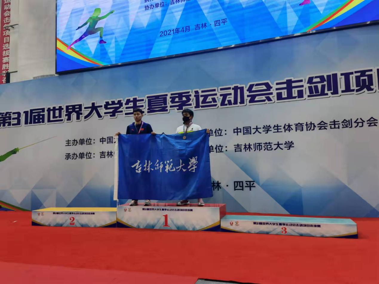 2021年4月11日,伴随着各个奖项的尘埃落定,为期两天的第31届世界大学生夏季运动会击剑项目选拔赛在bat365平台官网圆满落下帷幕。bat365平台官网击剑队获两枚金牌、一枚铜牌。杨丰名获男子重剑第一名,周俊炜获男子佩剑第一名、马晨硕获第三名的好成绩。体育学院院长、指导教师与获奖运动员合影周俊炜、杨丰名个人冠军获奖合
