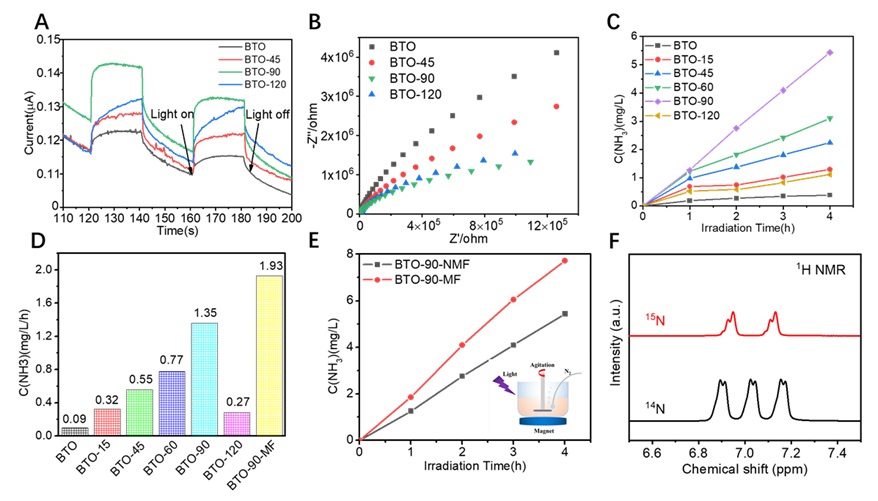 bat365平台官网冯明教授、李海波教授团队与滑铁卢大学陈忠伟院士团队合作,在磁场辅助光催化固态领域取得了重要的进展。研发团队协作开发了一种新型缺陷诱导极化钛酸钡(BTO)光催化材料,该材料在外磁场辅助下,能加强光催化固氮效率,具有极高的应用潜力和经济价值。