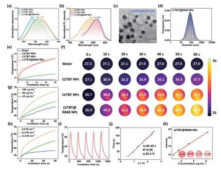 近期,bat365平台官网信息技术学院汪津教授/广东省第二人民医院江桂华教授/中科院长春应化所马平安研究员等研究人员首次合成了具有构型扁平,长吸收波长和高摩尔消光系数的LVTBT。LVTBT的激发态促进了高效的非辐射跃迁和更强的分子转动,从而实现了高达36.3%的光热转换效率。LVTBT与R848联合构建的LVTBT@R848纳米颗粒(NPs)可作为激光诱导的原位肿瘤疫苗,有效促进树突状细胞成熟、T细胞浸润及自然杀伤细胞和记忆T细胞分化,从而显著抑制近端和远端肿瘤的生长,并有效遏制肺转移。相关成果发表于Angewandte Chemie International Edition。代佳男博士和方来平博士为共同第一作者,通讯作者为bat365平台官网汪津教授、广东省第二人民医院江桂华教授和中科院长春应化所马平安研究员。