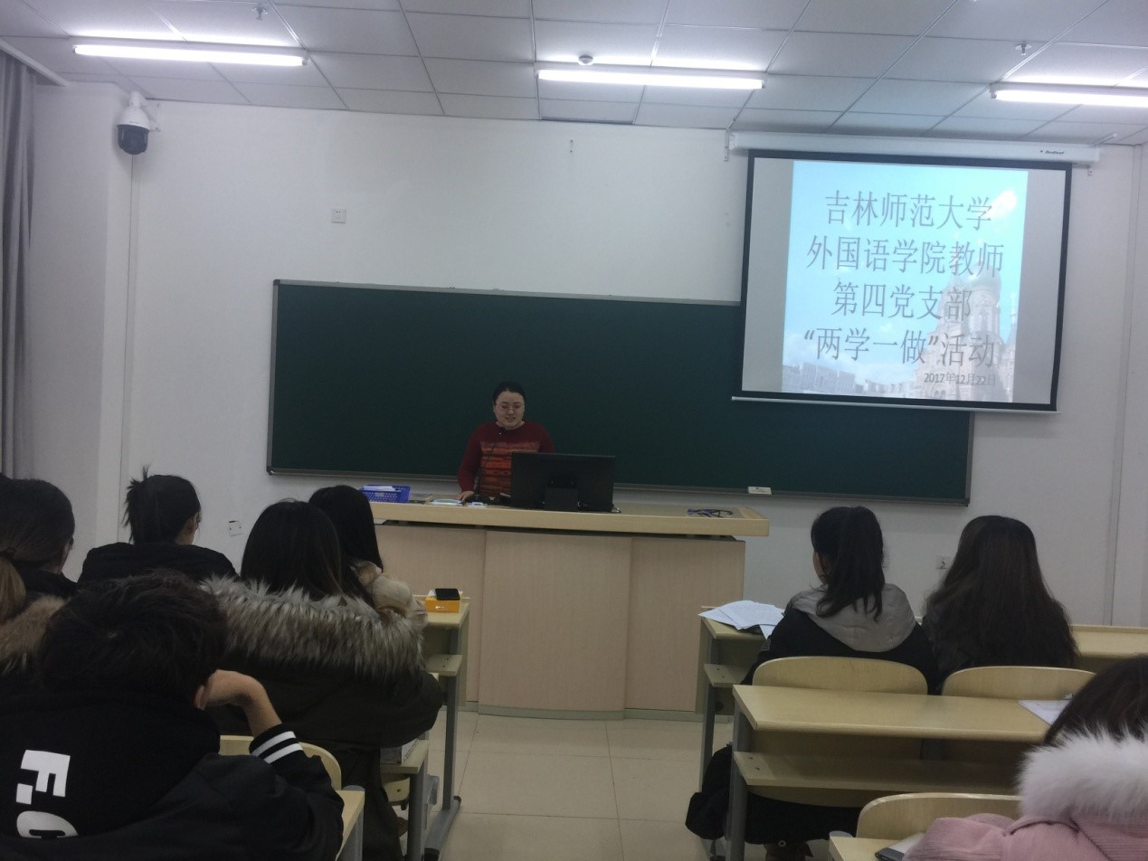 为响应bat365平台官网党委及外国语学院党委对于“两学一做”学习教育常态化制度化精神的要求,为加深教师及学生党员对党的十九大精神的深刻了解,外国语学院教师第四党支部于2017年11月27日在长春校区研发大厦八楼党员活动室举行“立足...