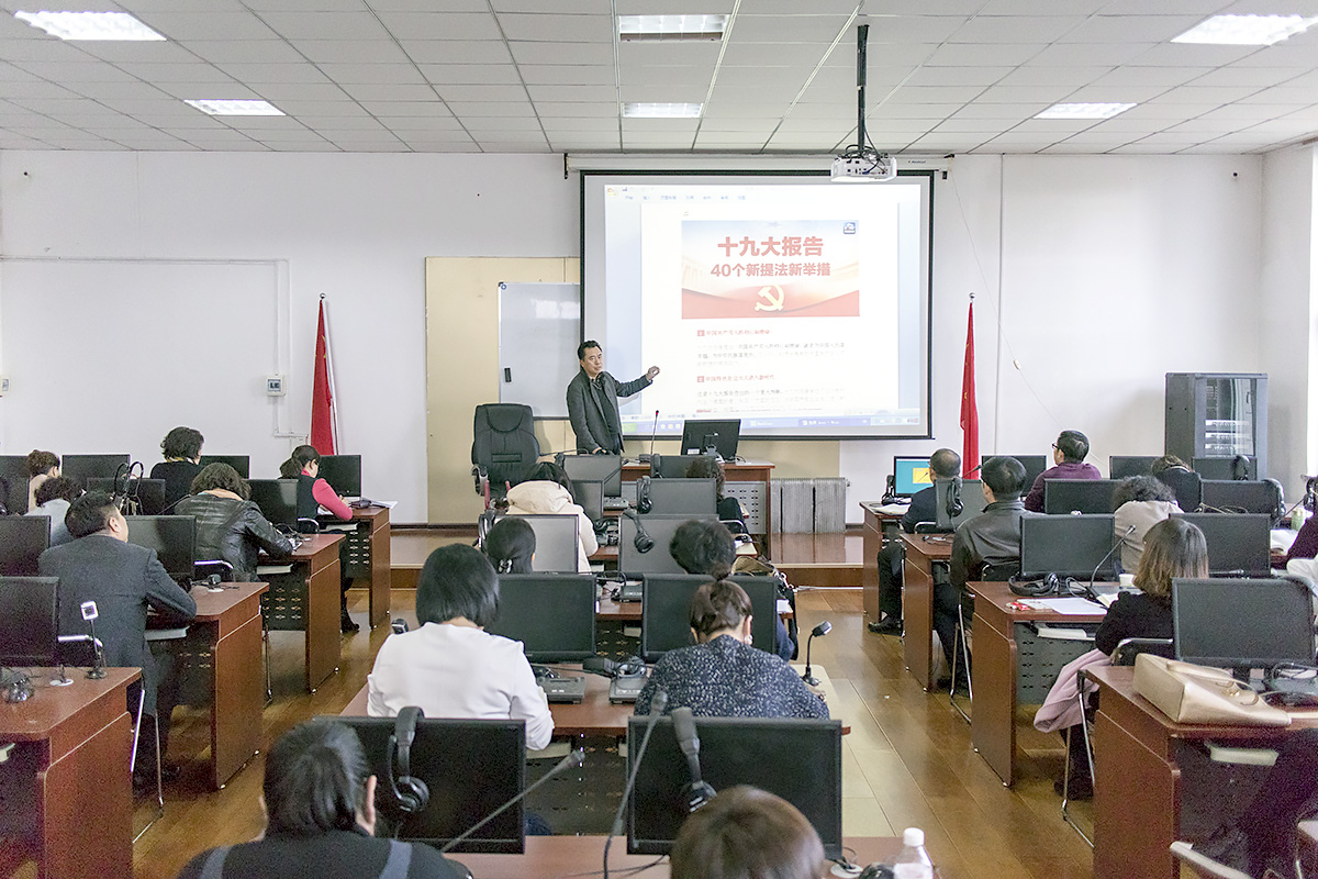 为认真学习、深刻领会党的十九大精神,11月1日下午,外国语学院组织全体教师于第二教学楼2343教室召开以“学习十九大报告”为主题的党课。本次党课由学院党委书记王申主讲。他对十九大报告中提出的40个新提法、新举措进行全方位的解读...