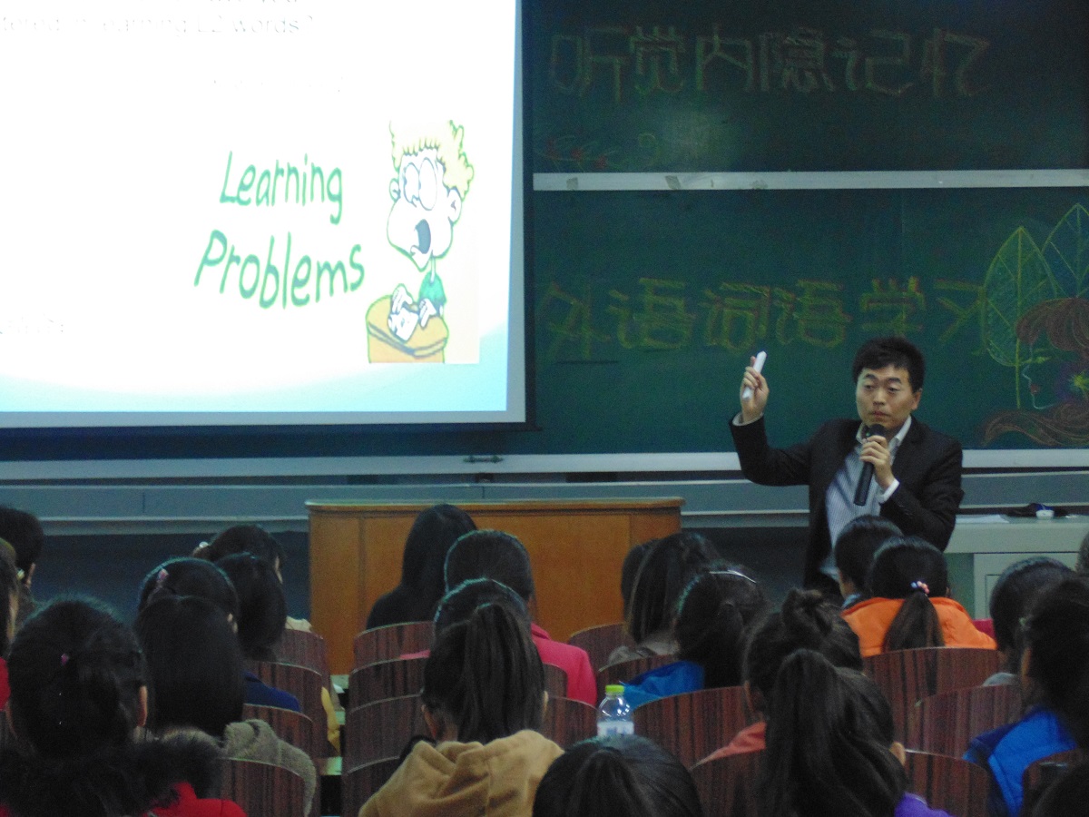 姜帆博士本次讲座的主题为“听觉内隐记忆与外语词语学习”。姜老师从“外语词语学习中所遇到的困难”谈起,与在场师生分享了他通过科学实验所得到的有关听觉内隐记忆与外语词语学习的研究成果,指导学生如何有效地进行外语学习。