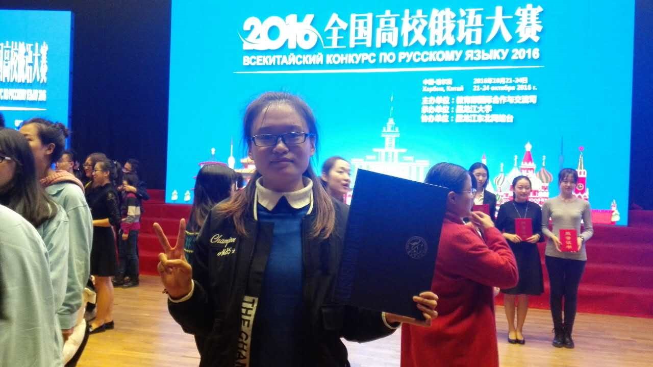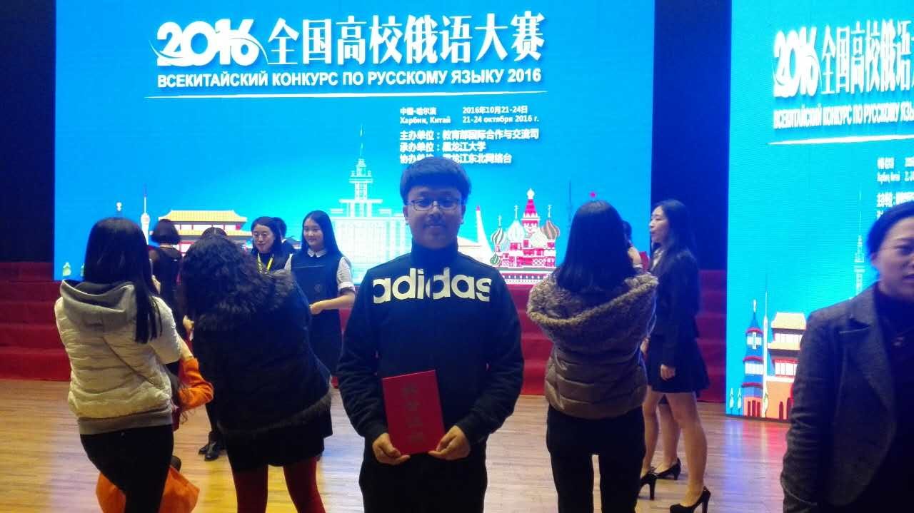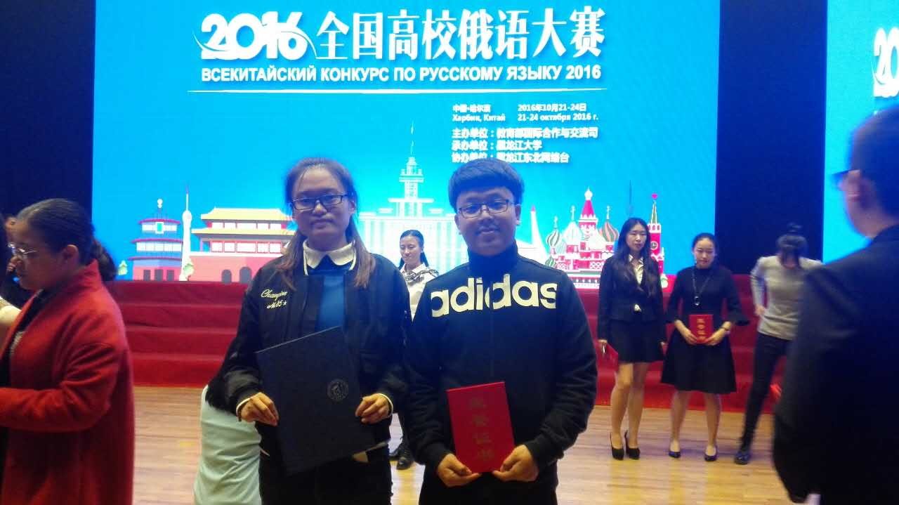 10月21-23日,由教育部主办、黑龙江大学承办的2016年全国高校俄语大赛在黑龙江大学举行,来自全国126所高校的325位选手参赛。经过激烈的角逐,我院俄语系2013级高庆同学在高年级组的比赛中以优异的成绩荣获三等奖;2015级俄语翻译专业硕士研究生张雷同学在演讲单项比赛中荣获三等奖。高庆和张雷两位同学为学校赢得了荣誉,同时也展现了bat365俄语系学生扎实的知识技能和良好的专业素养。