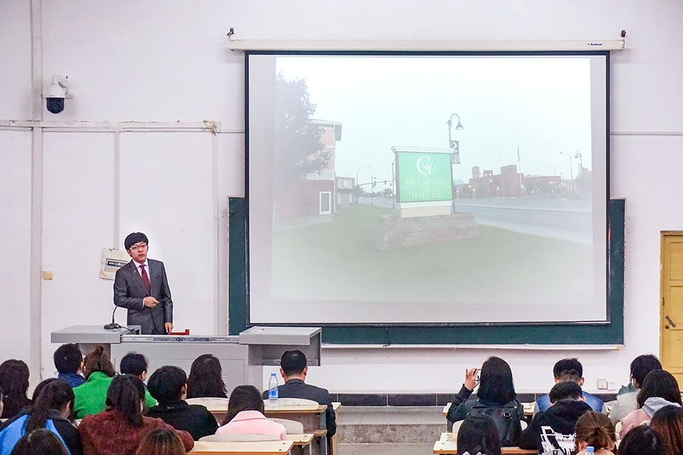 为帮助学生进一步了解国际及地区文化交流信息,打开国际视野,2017年3月29日,外国语学院英语系与商务英语系在第六教学楼6103教室联合举办国际及地区交流体验分享会。外国语学院教学副院长高卫红教授、党委副书记韩玉彬老师、普瑞教育的王枫老师、团委书记胡晶老师、英语系李艳红老师和商务英语系胡晓丽老师、国际交流与合作处尹伟老师、各年级辅导员老师出席本次分享会。