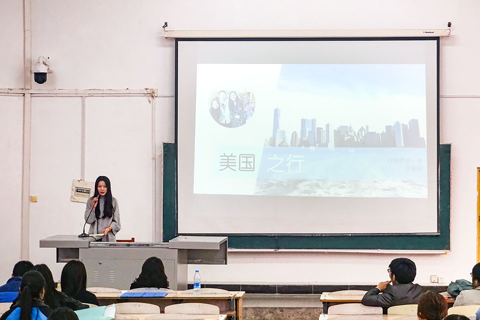 此次大会由李艳红老师主持。分享会上,普瑞教育王枫老师首先对暑期赴美文化体验项目进行了介绍;之后,学生代表13级王影、周佳琳、陈浩成,14级孟凡祺、陈虹烨、张紫菀以及12级已毕业的郑佳慧同学先后就赴美教育实习、赴美带薪实习、赴台交流学习、赴美交流学习、赴泰汉语志愿者的体验与收获心得进行了分享。他们精彩讲述赢得了在座老师和同学们的阵阵掌声。本次大会的成功举行,开阔了同学们的视野,使同学们进一步了解了文化交流的重要性,激发了同学们欲看世界之大的愿望。