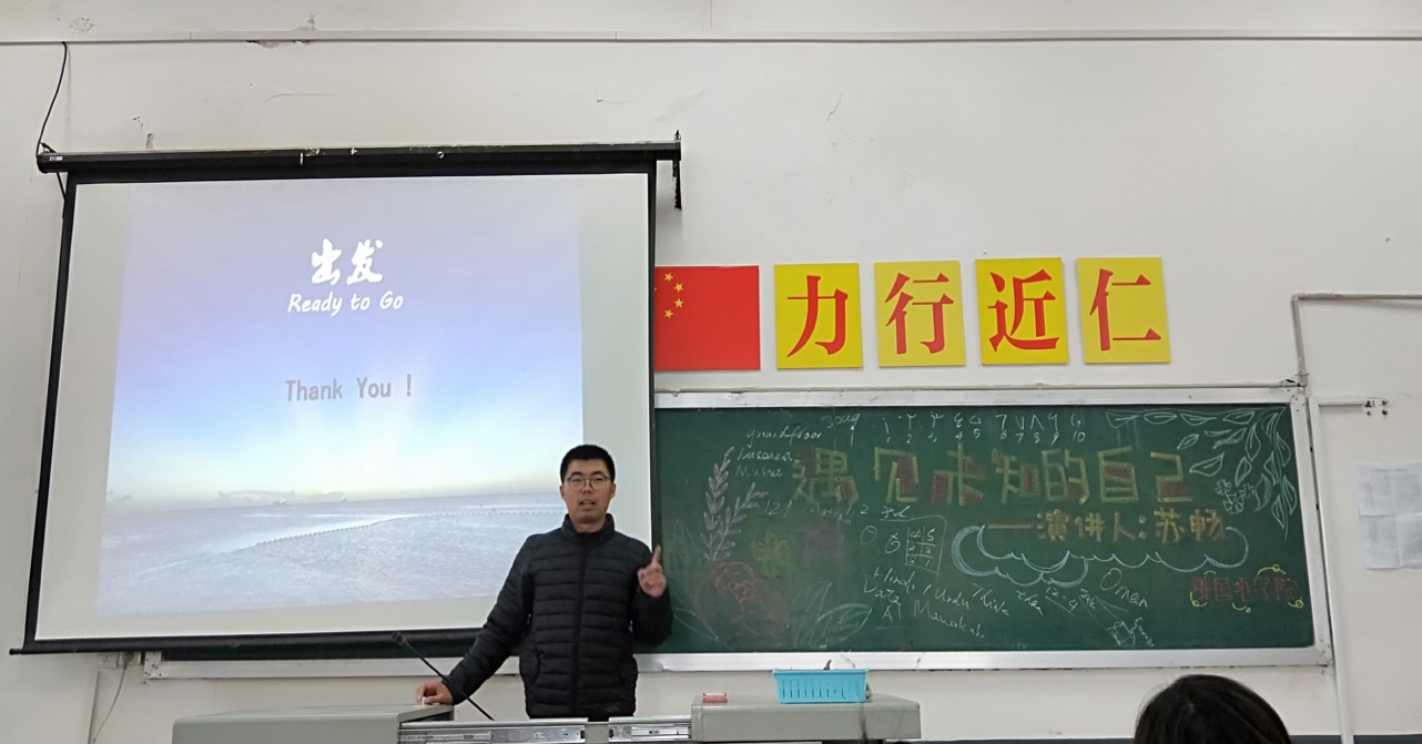 2018年3月7日下午2:00,商务英语系2016届毕业生苏畅在我院2311教室为商务英语系师生作了 “遇见未知的自己”专题讲座。讲座由丛琳老师主持,胡晓丽教师、杨淑玲老师及商务英语系全体学生聆听了讲座。