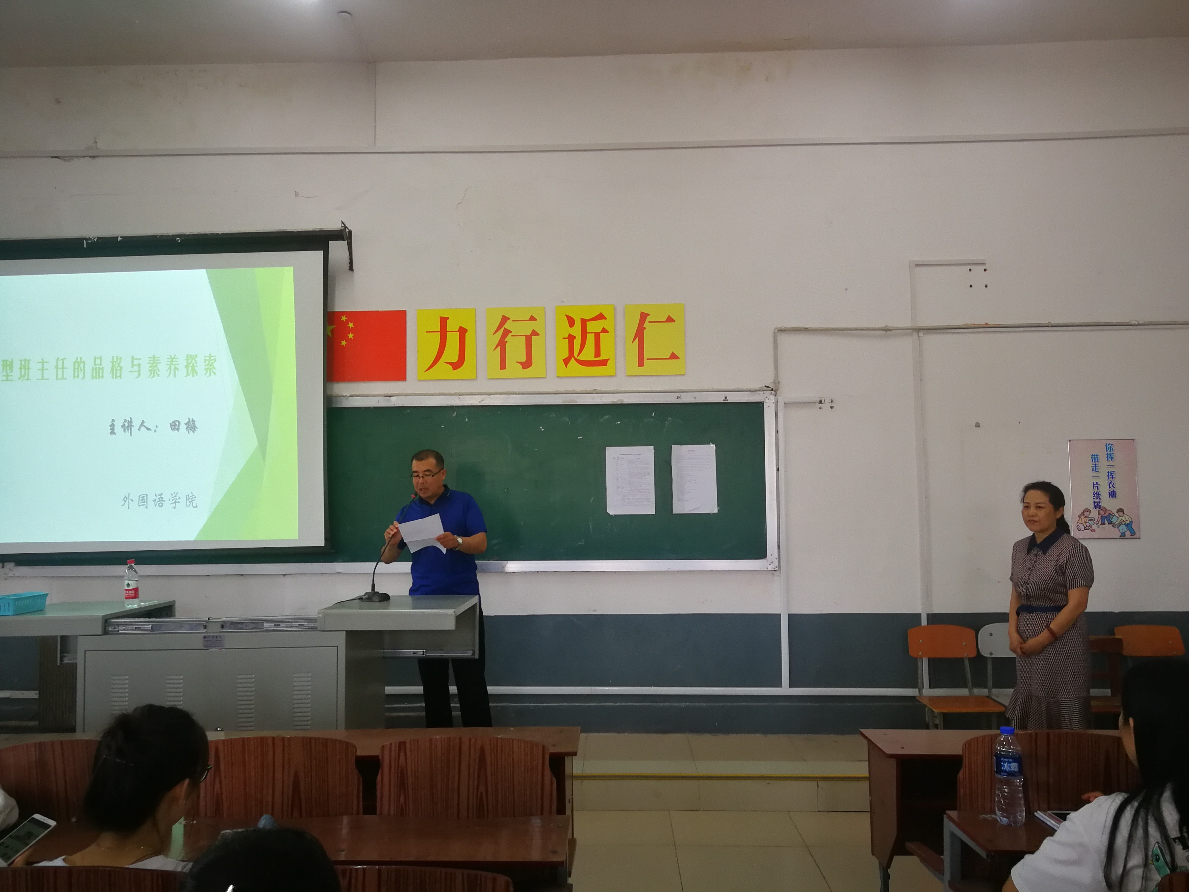 7月11日,外国语学院英语系在第二教学楼2311教室举办了“智慧型班主任的品格与素养探索”讲座,副院长梅春才教授出席,英语系部分老师及2015级全体学生聆听了讲座。