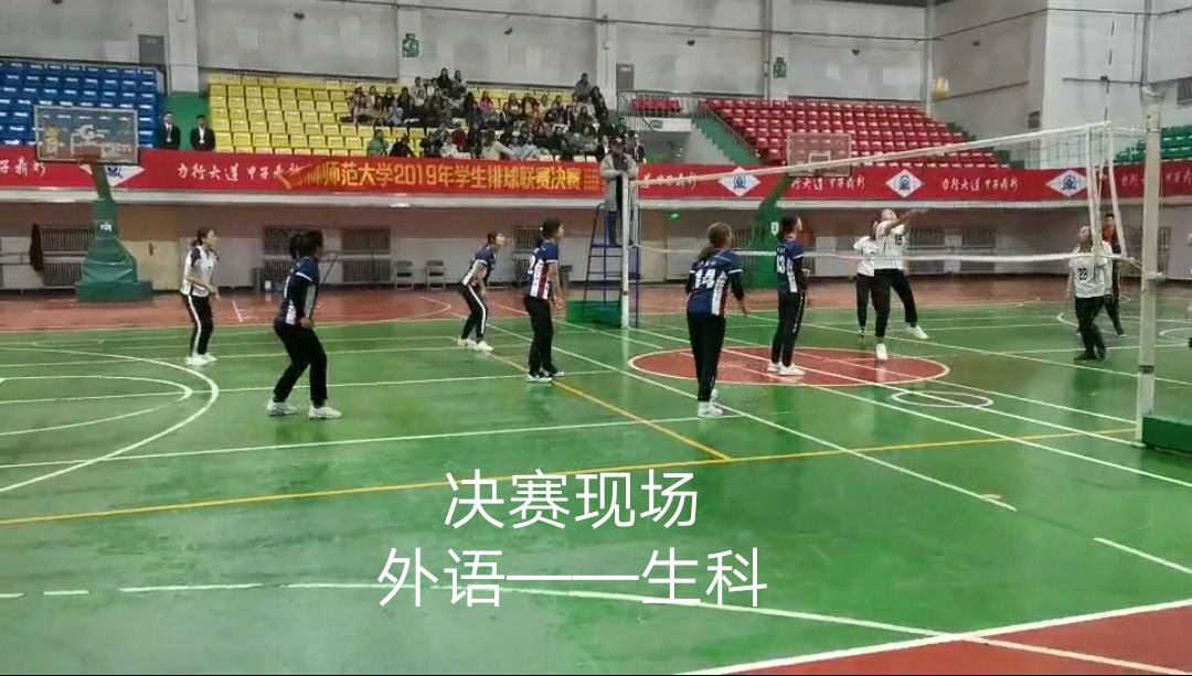 为了积极响应学校号召,学习奋勇拼搏的运动精神,10月20日上午,bat365排球联赛决赛在篮球馆隆重举行。黄智贤、张雪儿、李楠、王德新、姚慧馨、黄建、卢兰心、李梦格、李春阳九名队员在教练徐镜沅的带领下入驻场地,学院英语系高峰教授亲临现场指导,学生观众为其加油助威。