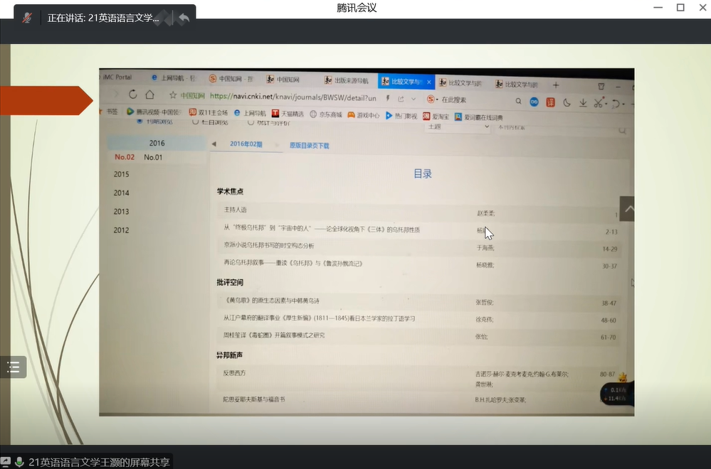 为营造研究生的学术氛围,展现研究生积极向上的精神风貌,促进研一新生尽快适应研究生的学习生活, 12月3日上午,学院线上举办英语语言文学专业研究生学术交流会。交流会邀请研三和研二年级6名学生代表进行经验分享。会议由英语文学研究方向负责人高卫红教授主持,英语语言所所长崔建立教授及相关教师出席,全体英语语言文学研究生参会。