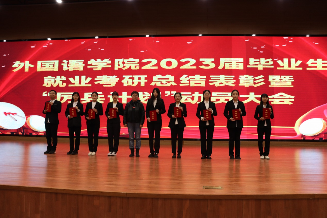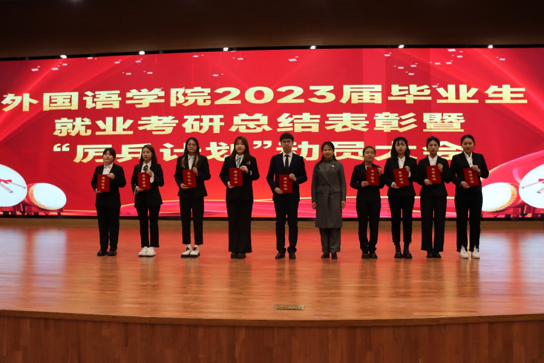 李淑华指出:2024届就业考研工作的号角已经正式吹响,需要全院上下继续凝心聚力,以今天为支点,努力工作,撬动学生求职考研的杠杆,让学生在外国语学院有更多的幸福感,获得感;全体学生要积极参与,以今天为起点,为祖国而学习,为未来做准备,以优异的考研、就业成绩为建校六十五周年献礼。
