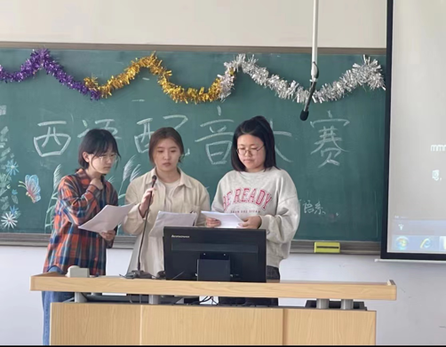 为进一步丰富校园文化生活,努力营造积极向上的文化氛围,4月26 日下午。西语系在11915教室举办语言文化艺术节(8)一“经典旋律”配音大赛 ,此次大赛邀请西语系专任教师车婉秋、王一朵担任评委。