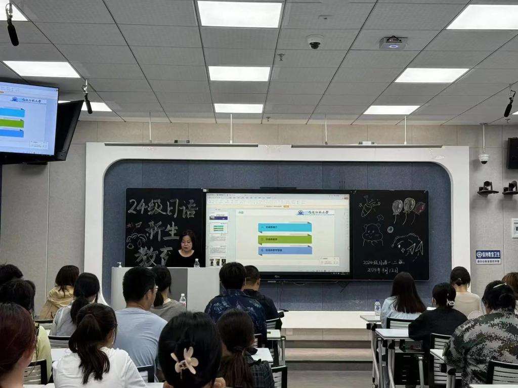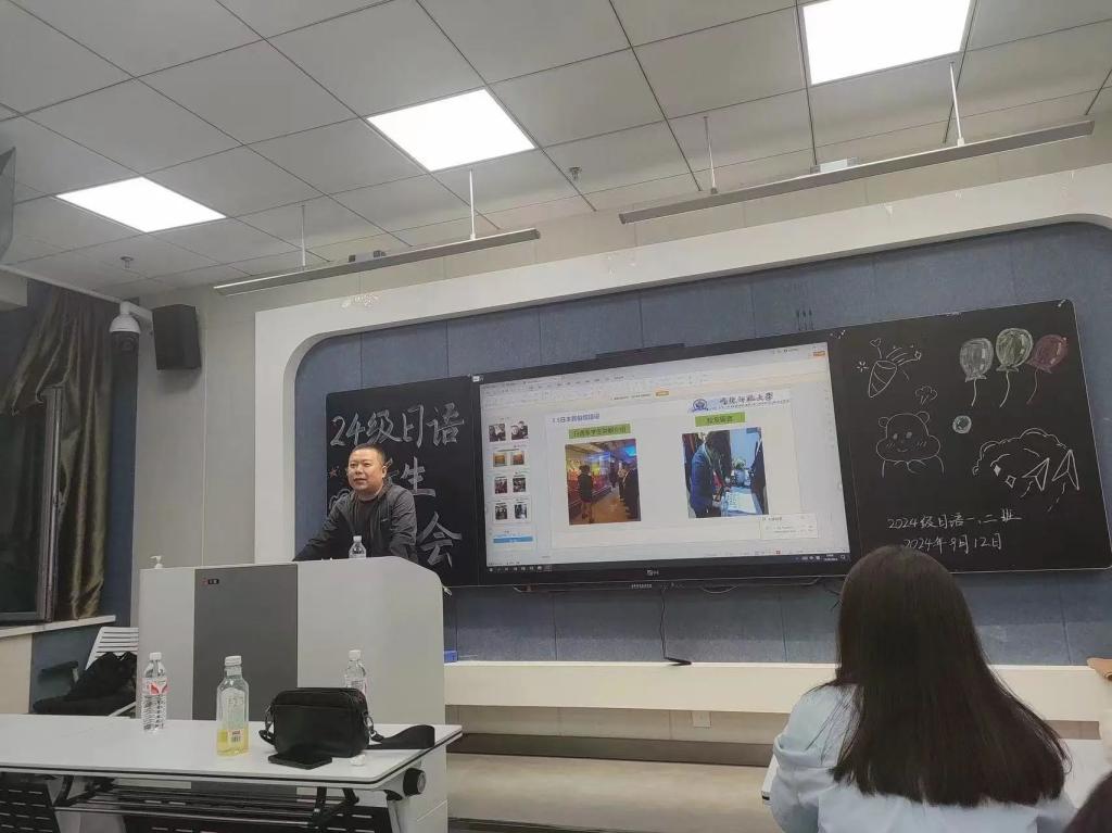 为增进新生间的相互了解,激发大家对日语学习的热情,同时也为即将开启的大学生活奠定坚实的基础,9月12日晚,日语系在11908教室举办了2024级日语新生学业培训会。日语系主任刘丽芳,专任教师聂亮、李雯、金煜出席会议。日语系全体新生及部分班代参加会议。会议由刘丽芳主持。