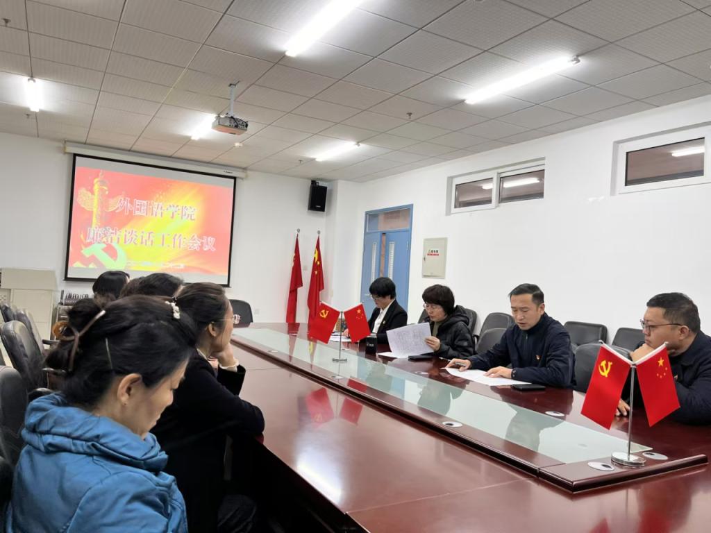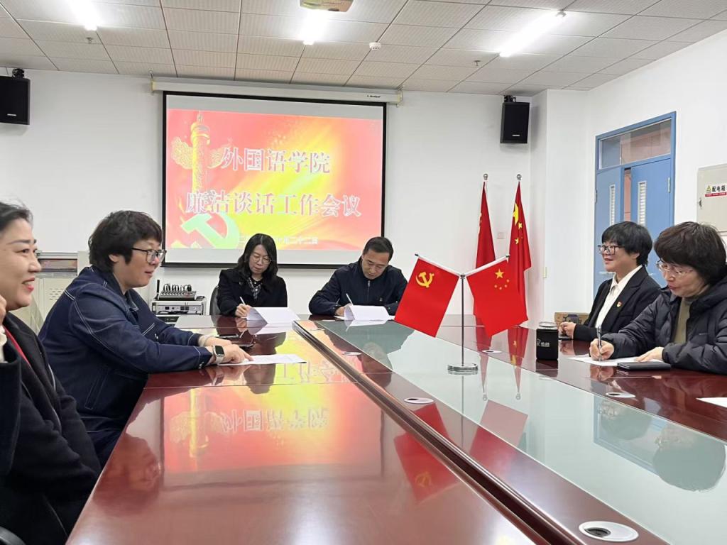 为抓好学院党员干部的警示教育工作,进一步深化巩固党纪学习教育成果,不断增强党员干部勤政廉政意识,10月22日下午,学院在双创2楼会议室召开外国语学院廉洁谈话工作会议。党委书记韩强、院长李淑华、副院长赵岩、李艳红、潘雁出席会议,科处级干部、系主任、党支部书记、全体辅导员参加会议。四平、长春校区同步网络视频。会议由赵岩主持。
