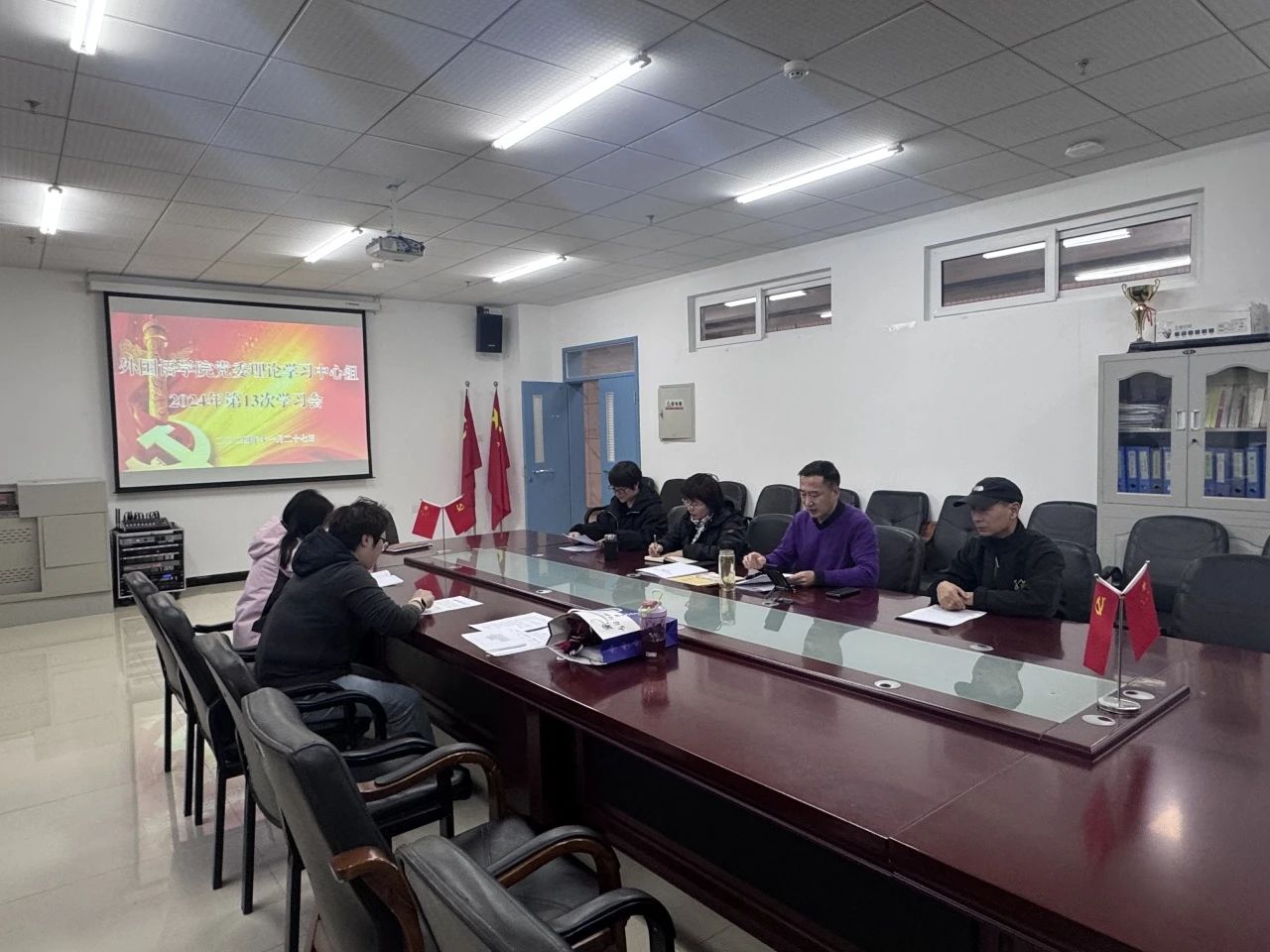 11月27日下午,学院在双创2楼会议室召开外国语学院2024年党委理论学习中心组第13次学习会,学院党委委员、领导班子、科级干部、各党支部书记参加会议,会议由党委书记韩强主持。