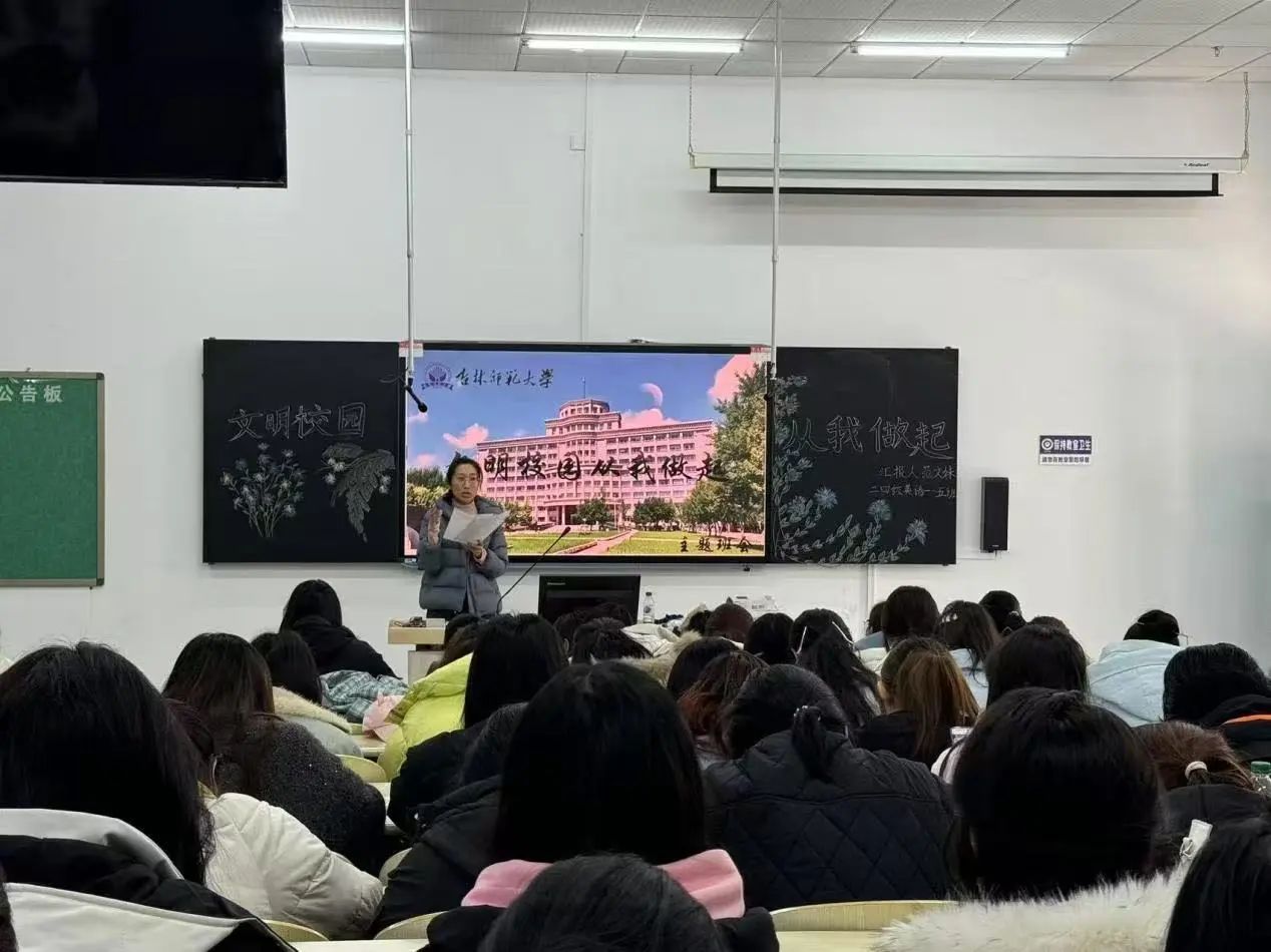 为深入贯彻学校关于校园文化建设要求,提升学生文明素养,营造和谐、有序、积极向上的校园环境,3月17日至3月21日,学院组织开展了“文明校园 从我做起”系列主题班会活动,在全院范围内掀起了文明建设的热潮。