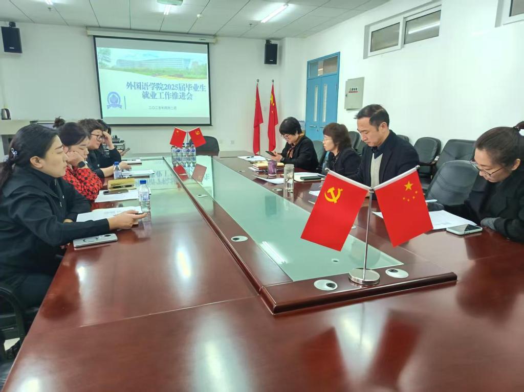 4月2日下午,学院在双创2楼会议室召开外国语学院2025届毕业生第2次就业工作推进会,院长李淑华、党委书记韩强、副院长赵岩、李艳红、潘雁,党委副书记胡晶出席会议,各专业系主任、学科负责人,全体辅导员参加会议,四平、长春校区同步网络视频。会议由李淑华主持。
